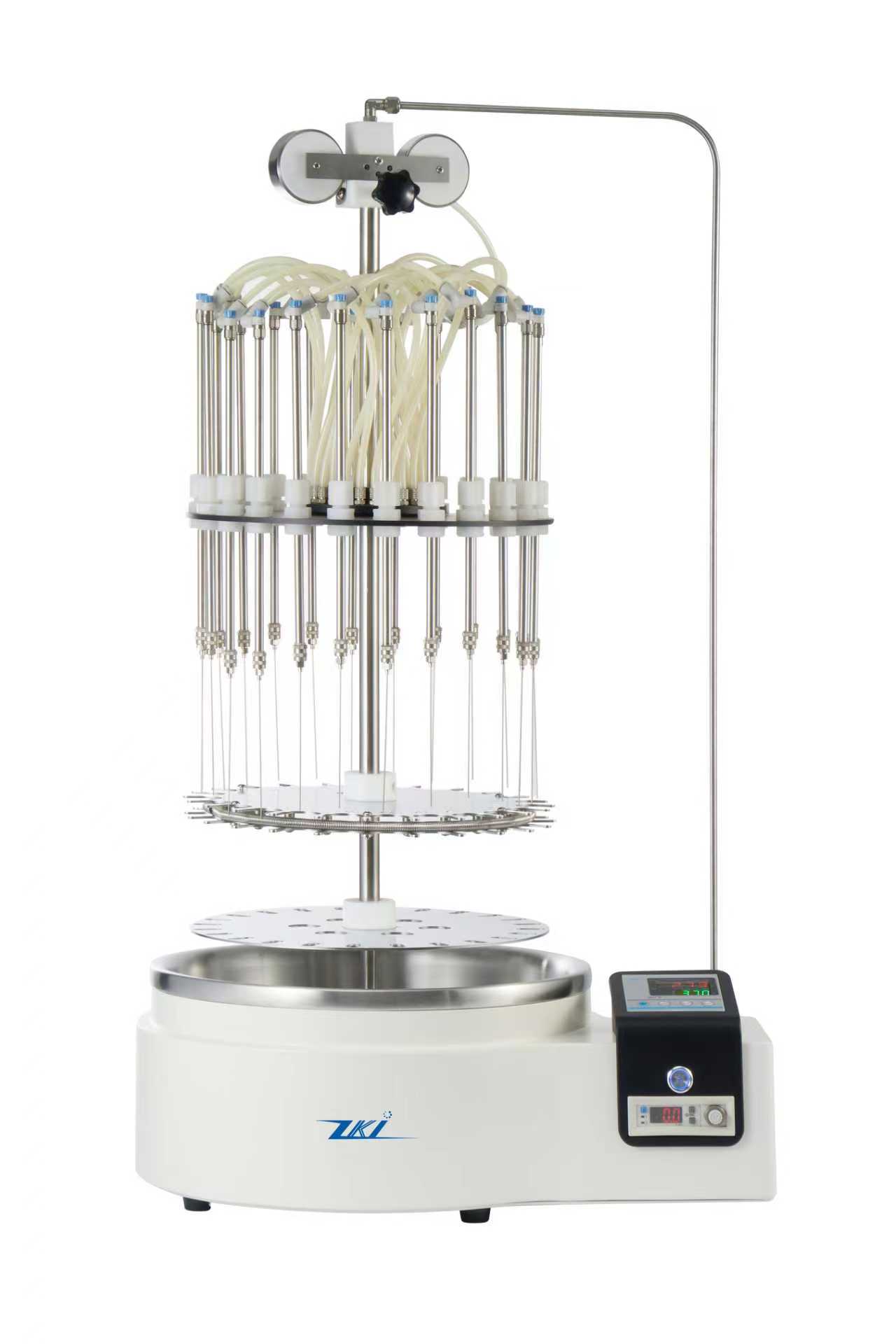 ZKNEV氮吹仪采用水浴恒温加热的方式,将氮气快速、连续、可控地吹入加热的样品表面从而将样品进行浓缩,这种方法省时、操作方便、容易控制,主要用于色谱、质谱等分析样品的纯化和制备,广泛应用于农残分析、环境分析、制药药检、生物分析、商品检验、食品饮料等领域,通过加快水、甲苯、甲醇、丙酮等溶剂的挥发,省时、省力、快速浓缩获得样品。